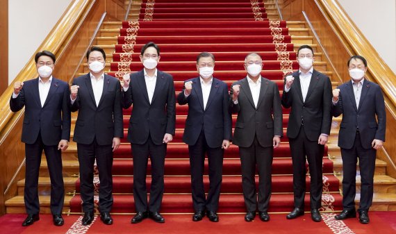 간담회에는 이재용 삼성전자 부회장을 비롯해 정의선 현대자동차그룹 회장, 최태원 SK 회장, 구광모 LG 회장, 최정우 포스코 회장, 구현모 KT 대표이사가 참석했다. 6개 기업은 향후 3년간 총 17만9000개의 일자리 창출과 청년을 위한 교육훈련 기회 제공 등을 약속했다.