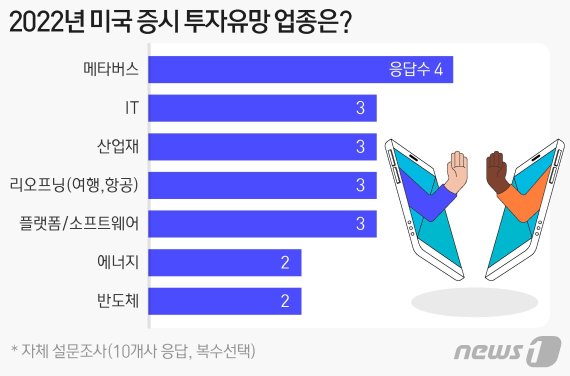 28일 <뉴스1>이 국내 증권사 16곳의 리서치센터장들에게 2022년 미국 증시 및 유망 업종에 대해 물어본 결과, 이같은 응답이 나왔다.