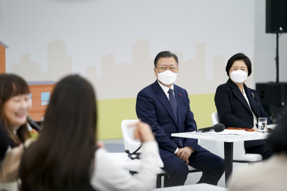 (서울=뉴스1) 조소영 기자 = 문재인 대통령 내외는 29일 오전 공주대학교 부설 특수학교 설립 현장을 방문해 학생과 학부모, 교사, 주민 대표 등과 간담회를 가진 후 기공식에 참석했다.