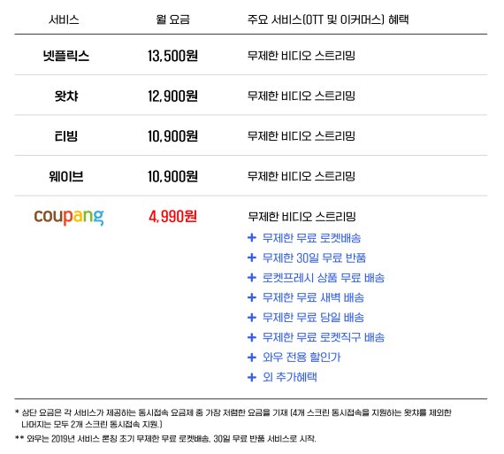 일각에서는 쿠팡이 기존의 멤버십 서비스는 물론 OTT와 비교해 낮은 가격에 서비스를 제공해온 만큼 가격 정상화에 나선 것이라는 해석도 있다. 현재 OTT 서비스를 제공하는 넷플릭스의 월 이용료는 1만3500원, 왓챠는 1만2900원, 티빙은 1만900원 수준이다.