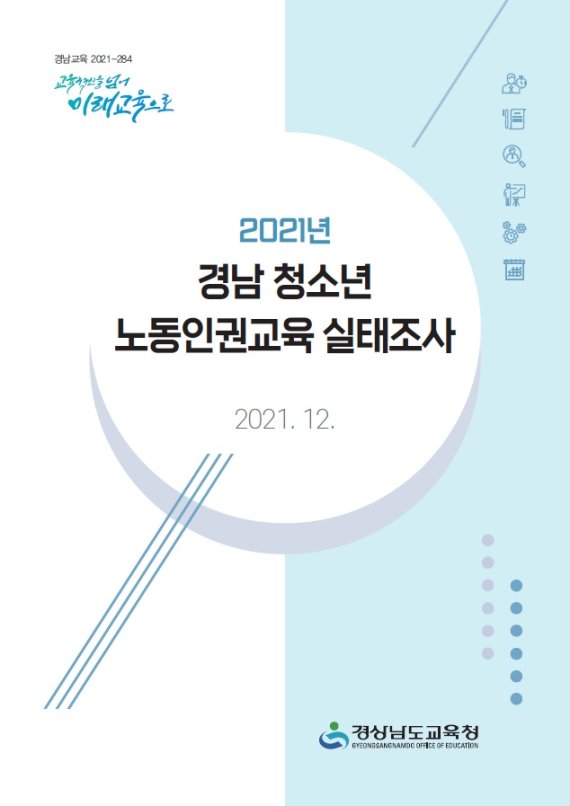 [창원=뉴시스] 홍정명 기자 = 경상남도교육청은 지역 청소년의 노동인권교육 정책 방향 설정을 위해 고교생을 대상으로 실시한 '2021년 경남 청소년 노동인권교육 실태조사결과 보고서'를 발간했다고 30일 밝혔다.