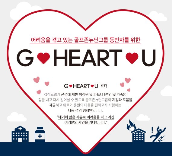 지난해 11월부터 약 한 달간 진행된 골프존뉴딘그룹의 G-HEART-U(골프존뉴딘그룹-하트-유) 프로그램은 질병, 상해, 자연재해, 사고 등으로 갑작스럽게 어려움에 처한 협력사, 레슨프로, 캐디, 골프존뉴딘그룹 임직원 등을 지원하기 위해 마련됐다.