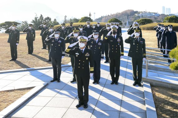 【파이낸셜뉴스 부산】 3일 강동훈(중장) 해군작전사령관 등 부산지역 육・해・공군 및 주한미해군사령부 장병들이 임인년 새해를 맞이해 대한민국 국토 수호의지를 결의하며, 부산 중구 민주공원 충혼탑에 참배했다.