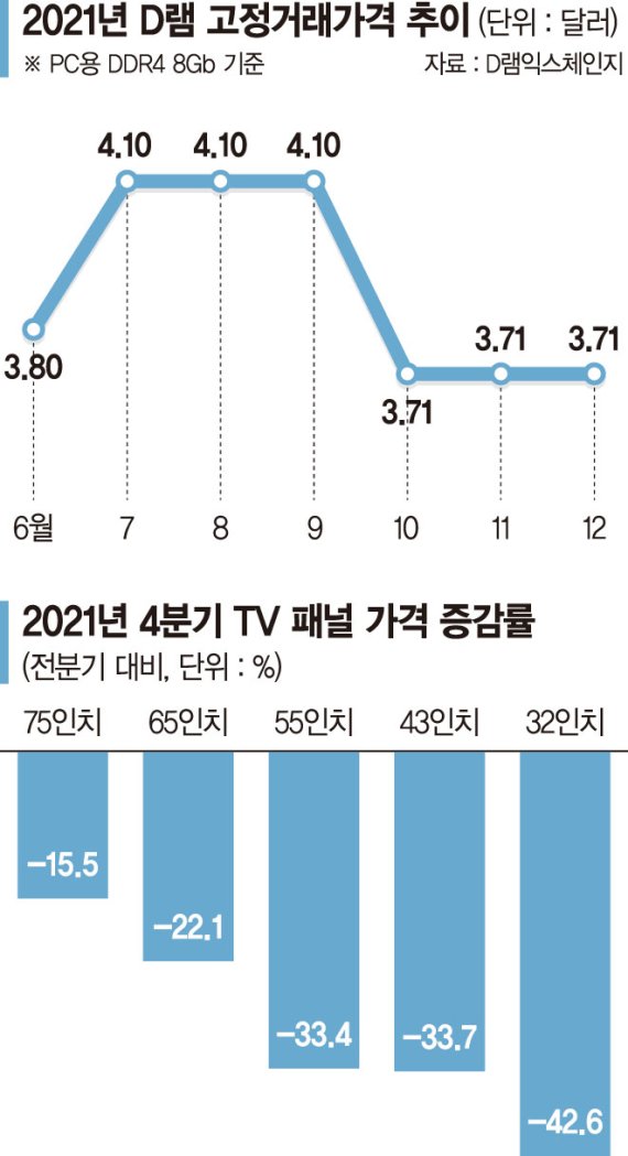 시장조사업체인 트렌드포스는 "PC D램 가격은 부품 공급난 완화로 올해 1·4분기 약 10% 이하로 하락할 것으로 예상한다"면서도 "최근 현물 거래가격 하락이 멈추고, 구매자들은 추가 가격 인상에 베팅하고 있다.