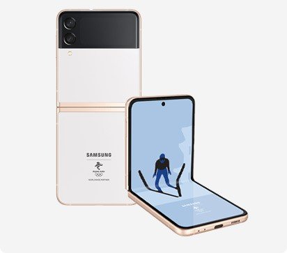 갤럭시 Z플립3 올림픽 에디션은 겨울을 상징하는 '윈터 드림 화이트' 색상을 채택했고 프레임과 힌지는 스포츠 골드 색상으로 포인트를 줬다.