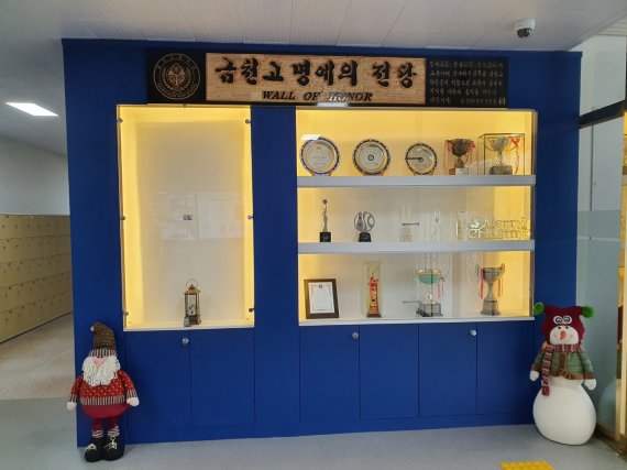 이곳에는 금천고 졸업생들의 트로피, 상패, 교직원장학회 명패 등을 비치했다.