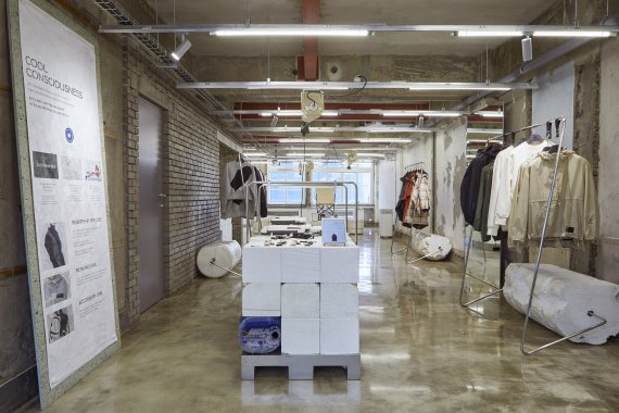 패션스쿨 '에스모드'와 협업한 작품도 전시한다. 코오롱스포츠는 지난해 1월부터 한 학기 동안 에스모드 서울의 2학년 학생 12팀에게 코오롱스포츠의 재고를 제공하고, '아웃도어'를 창의적으로 해석해 새로운 옷으로 탄생시키는 '지속가능한 패션환경을 위한 프로젝트'를 진행한 바 있다. 그 결과물을 이 곳 솟솟리버스에 전시한다.