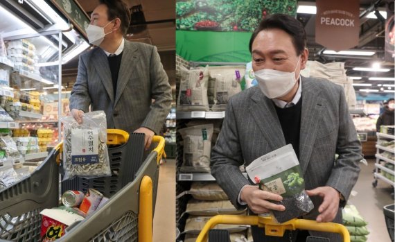 윤 후보측과 사전 교감 여부에 대해 나 전 의원은 "전혀 없었다"며 "후보가 장 보신 곳이 제 지역구인 사당 1동에 있는 이마트 이수점이었다"며 윤 후보의 장보기 소식을 듣고 자신도 '멸콩'했을 뿐이라고 했다.