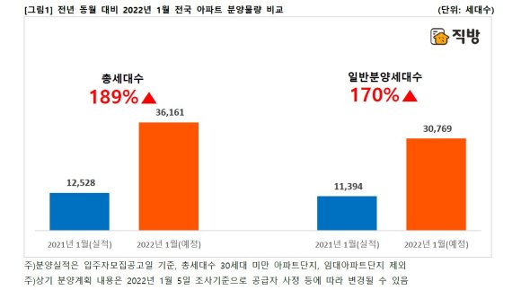 직방은 "2월부터 본격적으로 2022년 1·4분기 사전청약 입주자 모집이 시작되는 만큼 사전청약과 3월 분양 대전을 피해 1월에 분양하려는 단지들이 늘어난 것으로 보인다"고 분석했다.