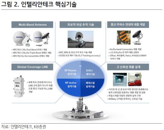 [서울=뉴시스] 김경택 기자 = KB증권은 12일 인텔리안테크에 대해 최근 뜨거워지고 있는 우주 경쟁의 최대 수혜주라고 분석했다. 투자의견 및 목표주가는 제시하지 않았다.