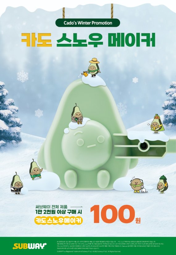 써브웨이 관계자는 "여름부터 겨울 시즌을 준비하며 눈 오는 날의 낭만과 재미를 느끼실 수 있는 스노우 메이커에 써브웨이만의 감성을 담아 ‘카도 캐릭터’로 준비했다”며 “소소한 굿즈지만, 커다란 즐거움을 느끼셨으면 하는 바람을 담았다"고 말했다.