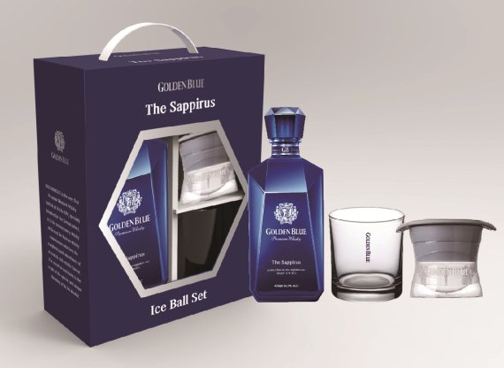 '더 사피루스 아이스볼 세트'는 골든블루 사피루스 450ml 1병과 언더락잔 1개, 아이스볼 메이커 1개로 구성돼 있다. 하이볼 문화가 커짐에 따라 소비자들이 집에서도 위스키 하이볼을 즐길 수 있도록 아이스볼 메이커를 구성품으로 넣었다.