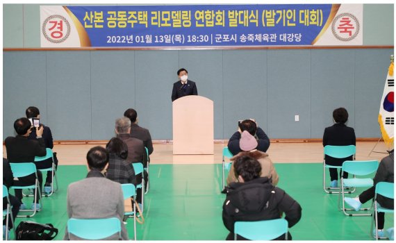 14일 군포시에 따르면 전날 오후 송죽 다목적체육관에서 '산본공동주택 리모델링 연합회'가 발대식을 열고 공식 출범했다.