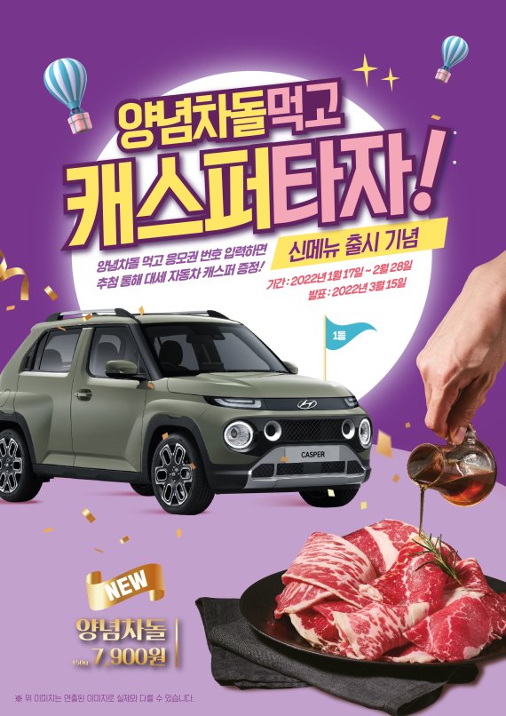 이번 이벤트는 신메뉴 양념차돌을 고객들에게 알리고 가맹점들의 매장 운영 활성화를 지원하기 위해 특별히 기획됐다.