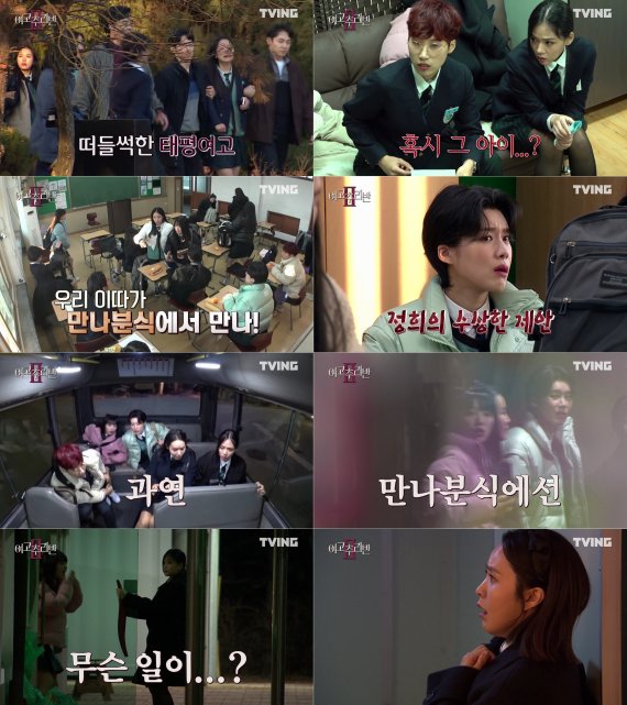 21일 공개되는 티빙 오리지널 '여고추리반2' 4회에서는 뜻밖의 비밀들이 드러난다. 같은 반 친구 반정희에 의해 마을에 있는 '만나분식'으로 소환된 멤버들, 동급생 이아란의 체포로 대혼란에 빠진 이들은 더욱 끈끈하게 뭉쳐 진실을 파헤칠 예정이다.