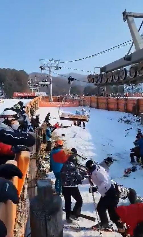 (포천=뉴스1) 이상휼 기자,이밝음 기자 = 22일 오후 3시께 경기 포천시 내촌면 베어스타운 스키장 내 리프트가 역주행하는 사고가 났다.
