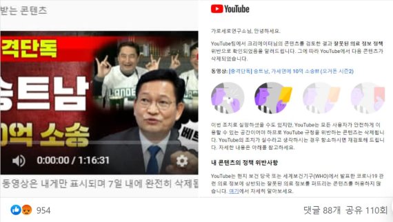 유튜브, 의료정보 정책 위반 1차 경고