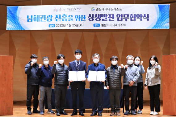 [남해=뉴시스] 차용현 기자 = 경남 남해관광문화재단과 남해 관광문화 레저기업인 엘림마리나 앤 리조트가 남해 관광활성화를 위해 손을 잡았다.