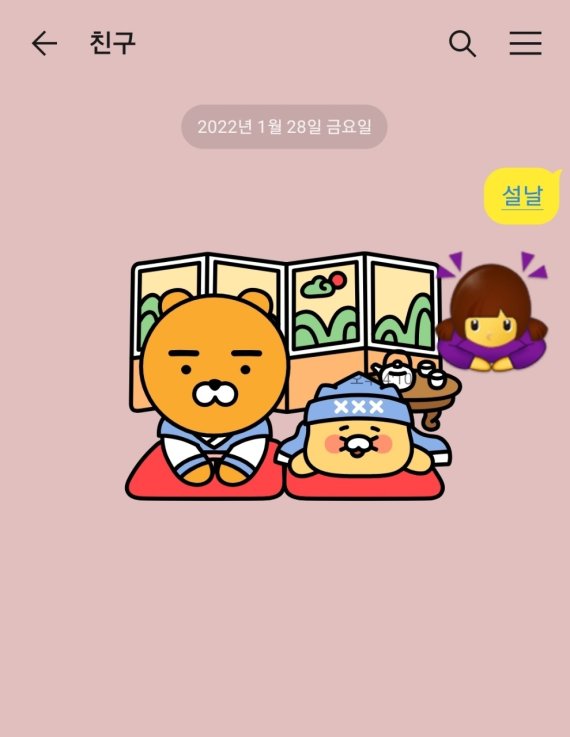 28일 업계에 따르면 카카오톡 이용자는 채팅창에서 '설연휴', '설날', '세배', '떡국' 등을 입력하면 배경이 일시적으로 변화하는 것을 확인할 수 있다. 영어로 'happy new year'를 입력하거나 설과 관련한 이모지(절하는 사람의 모습)를 입력해도 배경화면이 노출된다.