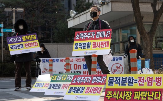 지난 6일 서울 여의도 한국거래소에 열린 '모자회사 쪼개기 상장과 소액주주 보호' 토론회에서 이용우 더불어민주당 의원도 "물적분할을 통한 자회사 쪼개기 상장은 공시 후 주가가 폭락하고, 모회사 주주는 배제한 채 일반공모를 통해 상장한다는 것이 문제가 되고 있다"고 말했다.