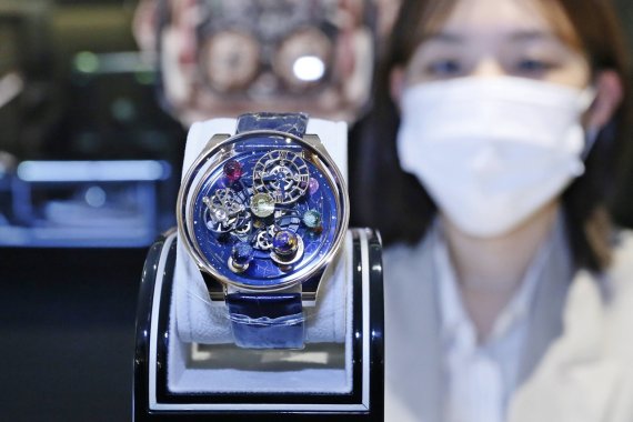 팝업은 쇼핑 공간과 바(BAR) 공간을 한자리에 모은 라운지형 콘셉트로 구성됐다. 대표 상품은 제이콥앤코의 '아스트로노미아 솔라 컨스텔레이션' 시계다. 천체시계 콘셉트의 제이콥앤코 대표 컬렉션으로 시계 다이얼 안에 태양계 8개 행성을 끊임없이 회전하는 각기 다른 색상의 스톤으로 형상화했다. 가격은 4억8000만원대다.