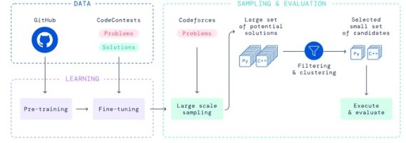 알파폴드는 코드 공유 플랫폼 깃허브(GitHub)에서 선택된 코드로 사전학습을 한 뒤에 선별된 프로그래밍 문제로 미세조정을 거쳤다.