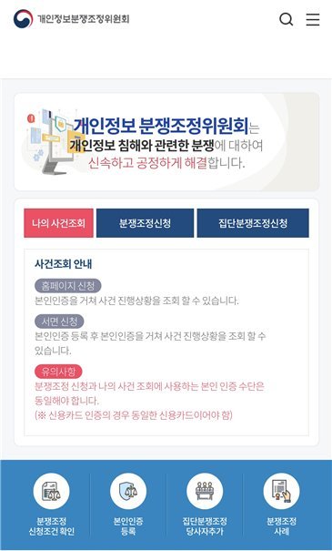 이번에 개통하는 개인정보 분쟁조정 사이트에선 스마트폰으로 분쟁조정을 신청할 수 있다. 자신이 신청한 분쟁조정 사건이 처리되는 상황을 실시간 확인할 수 있다.