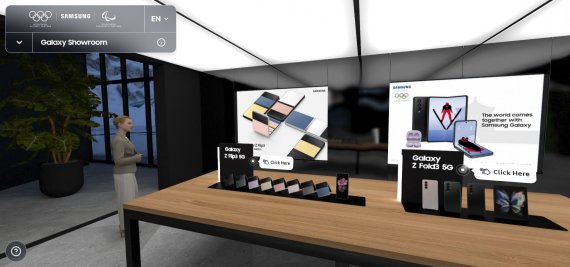 특히 갤럭시 쇼룸에는 지난해 폴더블폰 대중화를 이끈 갤럭시Z폴드3·플립3가 배치돼 있다. 각 항목을 클릭하면 색상별 폴더블폰을 접었다 펴는 등 Z시리즈 외관과 디자인을 사용자가 원하는 각도에서 둘러볼 수 있다. 이외에도 삼성전자는 네이버 제페토와 협업해 만든 메타버스 공간 '갤럭시 하우스 온 제페토'를 운영 국내 사용자들에게 올림픽 관련 실시간 정보를 제공할 예정이다.