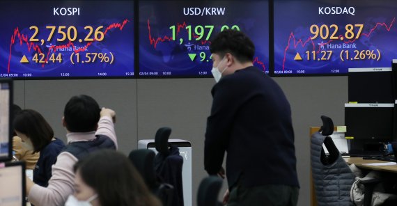 6일 한국거래소에 따르면 지난주 코스피는 전주(2663.34) 대비 86.92포인트(3.26%) 오른 2750.26에 마감했다. 명절 연휴 기간 동안 뉴욕증시가 연달아 오른 것이 긍정적인 영향을 주면서 강한 상승세가 나타났다.