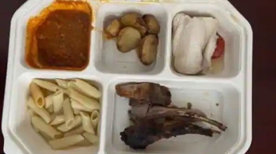 바스네초바가 올린 사진에는 까맣게 탄 고기 몇 조각, 파스타 한 주먹, 감자 등 음식이 제공된 것을 확인할 수 있다.