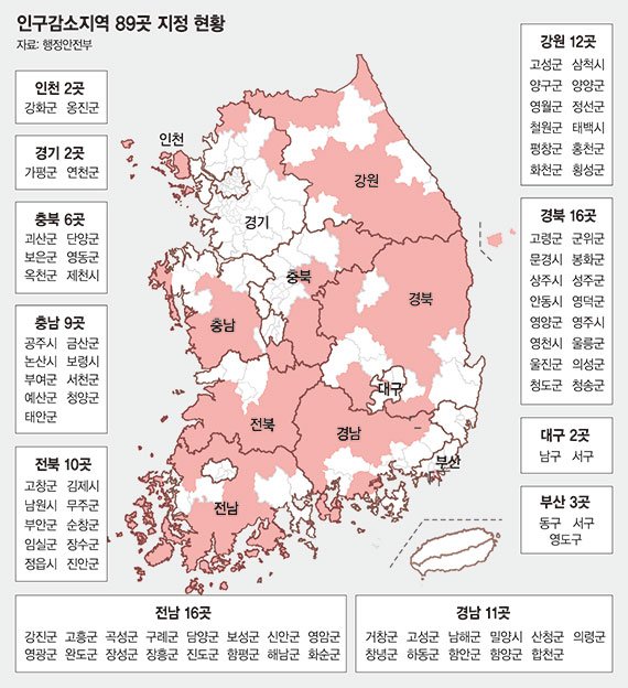 앞서 지난해 10월 행안부는 인구밀도·고령화비율 등을 지표로 인구감소지역 89곳을 지정, 고시했다. 또 지방자치단체 기금관리기본법을 개정, 지방소멸대응기금(총 10조원)을 도입했다.