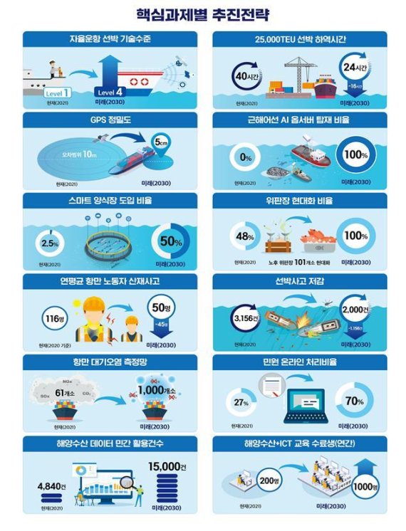 (세종=뉴스1) 백승철 기자 = 해양수산부는 해양수산업의 신속한 디지털 전환과 함께 일상까지 스마트화하기 위해 '해양수산 스마트화 추진전략(이하 스마트화 전략)'을 '해양수산 스마트화 추진전략 2.0(이하 스마트화 전략 2.0)'으로 확대 개편했다고 9일 밝혔다.