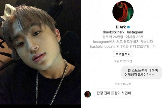 지난 8일 한 온라인 커뮤니티에는 디아크가 한 네티즌과 주고받은 인스타그램 메시지가 공개됐다.