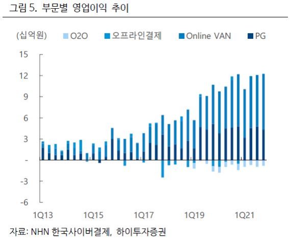 매출액은 전년 동기 대비 15.1% 증가했으며 온라인 및 오프라인 결제 모두 고르게 성장했다. 4분기 PG 거래대금은 약 8조7000억원으로 16% 성장했으며 특히 해외가맹점 거래대금은 전년 동기 대비 42% 성장하며 전체 거래대금 중 비중이 10% 수준을 기록했다. 오프라인 밴 사업부는 작년 4분기 위드 코로나 시행과 계절적 성수기 영향으로 전 분기 대비 3.3% 증가했으며 페이코(PAYCO) 단말기 판매 증가에 따라 결제 인프라가 확대됐다.