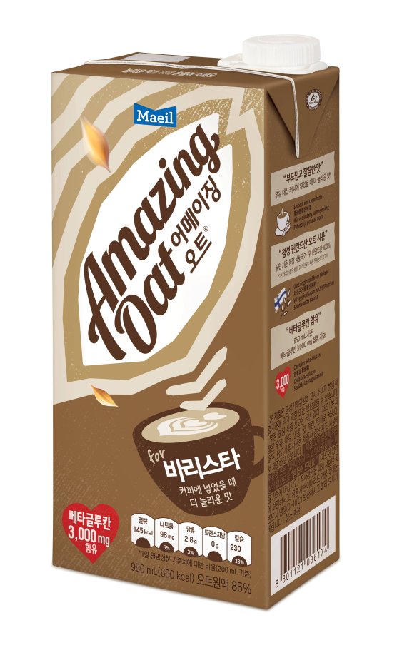 매일유업은 지난 7일 대용량 '어메이징 오트 바리스타'를 출시하고 폴 바셋에 납품을 시작했다. 앞으로 폴 바셋에서 우유 옵션 변경이 가능한 제조음료를 주문할 때 기본 옵션인 우유 대신 어메이징 오트로 무상 변경이 가능하다.