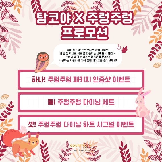 [서울=뉴시스]김정환 기자 = 서울 영등포구 영등포동 코트야드 메리어트 서울 타임스퀘어는 실내 애니멀 테마 파크 '주렁주렁' 영등포 타임스퀘어점과 연계한 밸런타인데이 맞이 커플 타깃 이벤트와 식음 프로모션을 선보인다.