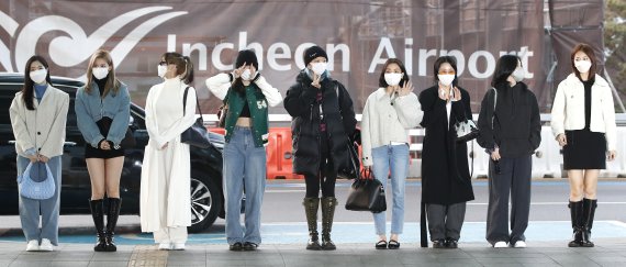 (인천공항=뉴스1) 박혜성 기자 = 트와이스 멤버들이 공항에 모인 수 많은 팬들을 향해 반갑게 인사했다.