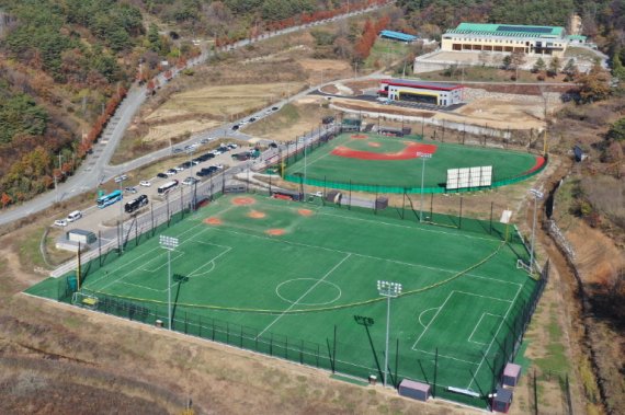 지난해 12월까지 1년여의 공사를 거친 끝에 지상 2층으로 신축된 실내야구장에는 피칭머신 2대와 토스머신 3대 등의 설비도 갖췄다.
