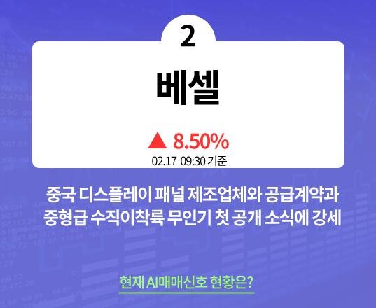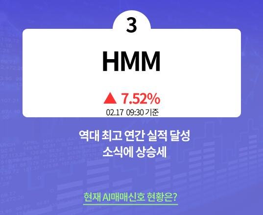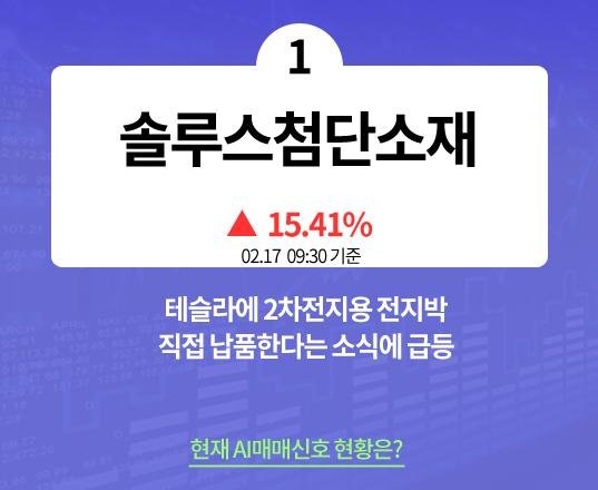 최적의 매매타이밍을 실시간으로 전송하여 투자자들에게 도움이 되고 있는 주식AI 라씨 매매비서가 오늘 분석한 장초반 인기검색종목은 솔루스첨단소재(+15.41%), 베셀(+8.50%), HMM(+7.52%), 인터파크(+4.66%), 대한항공(+1.83%) 이었다.