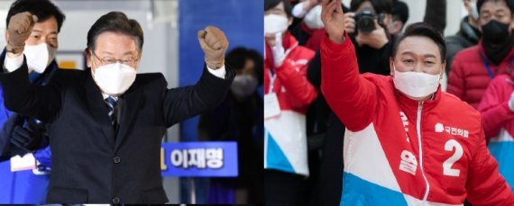 17일 정치권에 따르면, 50대의 경우 비교적 지지후보군 집중도가 뚜렷한 다른 연령대와는 달리 이재명 더불어민주당·윤석열 국민의힘 후보간 지지율이 오차범위내에서 치열한 접전양상을 띠고 있다.