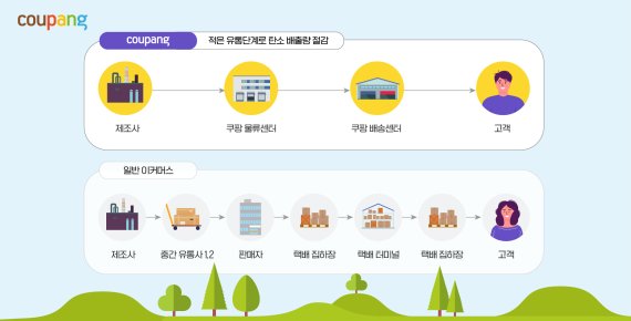 쿠팡은 차별화된 물류 프로세스 구축을 통해 친환경 배송을 실천하고 있는 내용을 18일 소개했다. 쿠팡은 전국 30개 지역에 100개 이상의 물류 인프라를 통해 새벽배송과 당일배송 등 혁신적인 서비스를 제공하고 있다. 대한민국 인구의 70%는 쿠팡 배송센터로부터 10km 이내에 거주한다.
