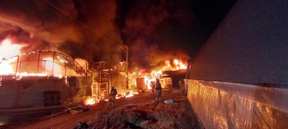 (고양=뉴스1) 이상휼 기자 = 19일 오전 5시38분께 경기 고양시 덕양구 선유동의 비닐하우스에서 불이 났다.