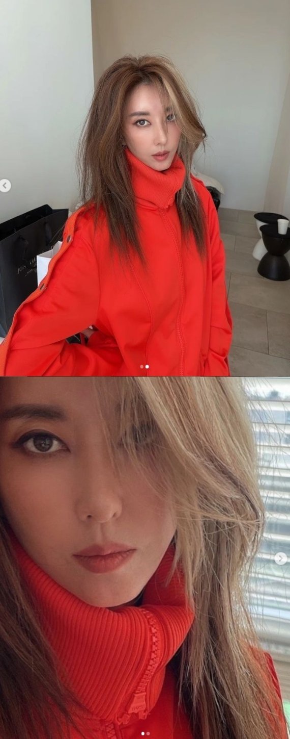 김완선은 강렬한 오렌지색의 독특한 의상을 입고 포즈를 취했다. 화려한 메이크업에 더욱 또렷한 이목구비가 시선을 사로잡고 있다. 1969년생으로 올해 우리나이 54세인 김완선의 동안 미모 역시 돋보인다.