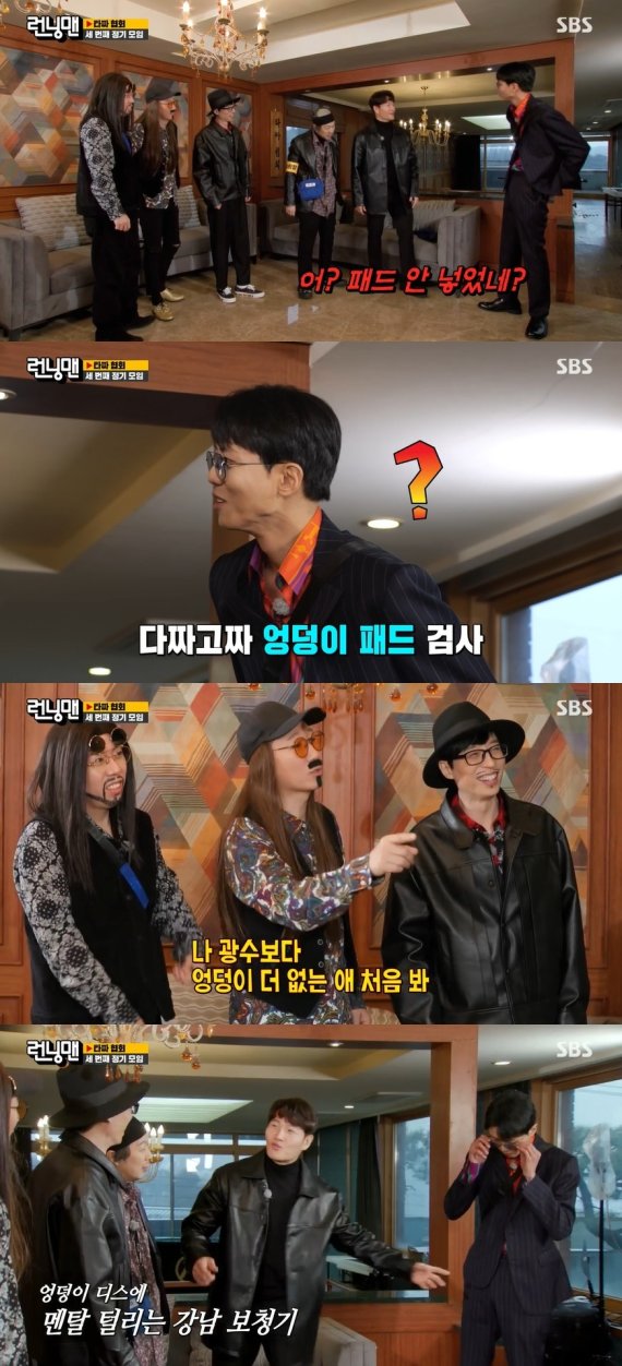 김종국은 갑자기 주우재의 엉덩이를 만지며 "어? 패드 안 넣었네?"라고 했고, 주우재는 당황했다. 이에 지석진은 "나 광수보다 엉덩이 더 없는 애는 처음 본다"고 했고, '런닝맨' 멤버들은 "면두부다, 말랑말랑 하더라"며 "엉덩이가 진짜 없다"고 놀렸다.