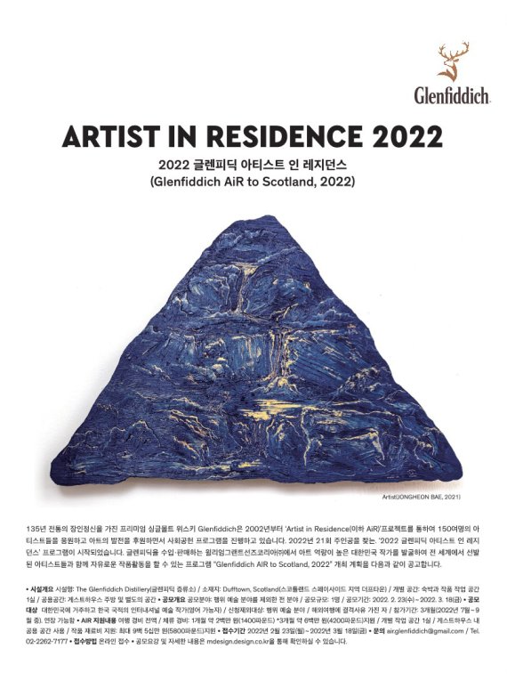 [파이낸셜뉴스] 윌리엄그랜트앤선즈의 프리미엄 싱글몰트 위스키 글렌피딕이 아티스트를 지원하는 프로그램인 '2022 글렌피딕 아티스트 인 레지던스'의 국내 참가자를 모집한다고 21일 밝혔다.