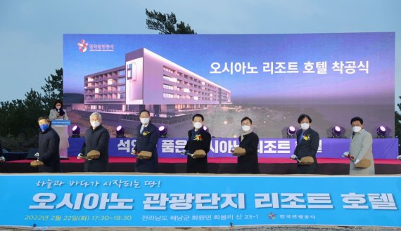23일 해남군에 따르면 전날 한국관광공사는 해남군 화원면 오시아노 관광단지에서 리조트호텔 착공식을 가졌다.