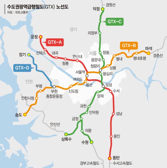 주민과 지자체의 강한 요구에 당초 계획에는 없었던 수도권광역급행철도(GTX)-C 노선의 왕십리·인덕원·의왕·상록수 등 4개 역의 추가 정차가 사실상 확정되며 대선후보들의 GTX 공약에 대한 주민들의 기대감이 커지고 있다.