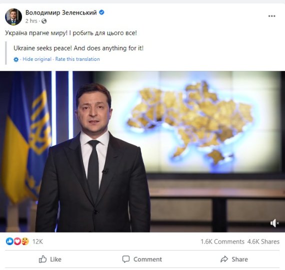 젤렌스키 대통령은 러시아의 침공이 발생하기 직전 연설에 나섰다. 푸틴 대통령과 전화통화를 시도했지만 실패했다고 말했다. 그는 유창한 러시아어로 10분동안 평화를 호소하며 침공 중단을 촉구했지만 소용은 없었다.