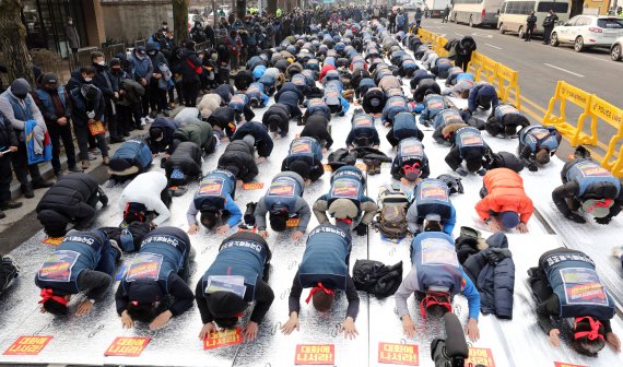 택배노조는 지난 23일부터 대리점 연합화 협상을 벌여왔다. 이들은 지난해 12월 28일부터 60일째 파업을 이어가고 있다. 지난 10일부터는 CJ대한통운 본사를 기습점거하고 농성을 진행 중이다.