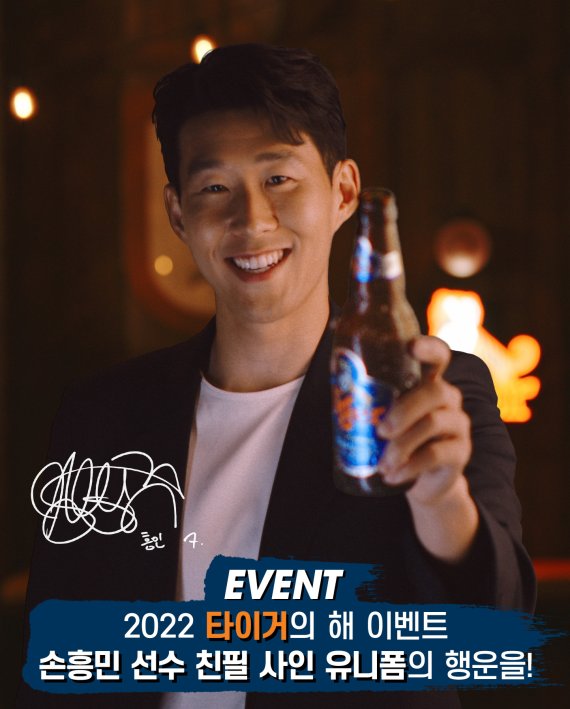 [서울=뉴시스]김정환 기자 = 타이거맥주는 잉글랜드 프리미어리그(EPL)에서 활약 중인 축구 국가대표 공격수 손흥민(29·토트넘) 친필 사인이 든 타이거 유니폼을 내걸고, 25일부터 3월13일까지 SNS 이벤트를 펼친다고 25일 밝혔다.